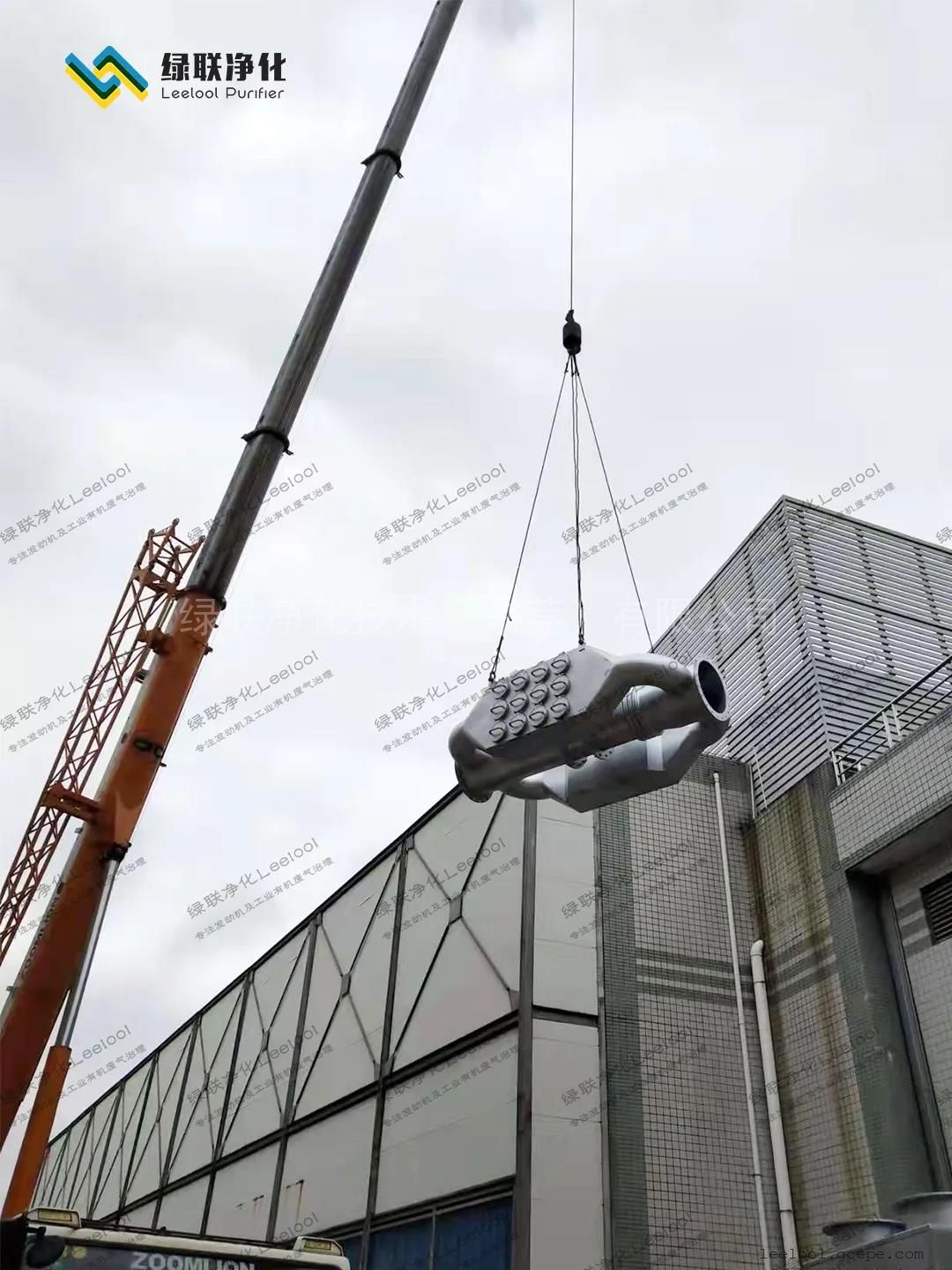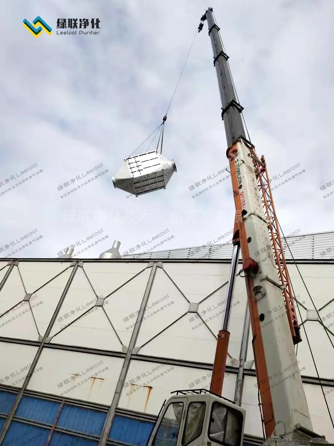 ▲将绿联净化SCR脱硝系统吊入设备机房