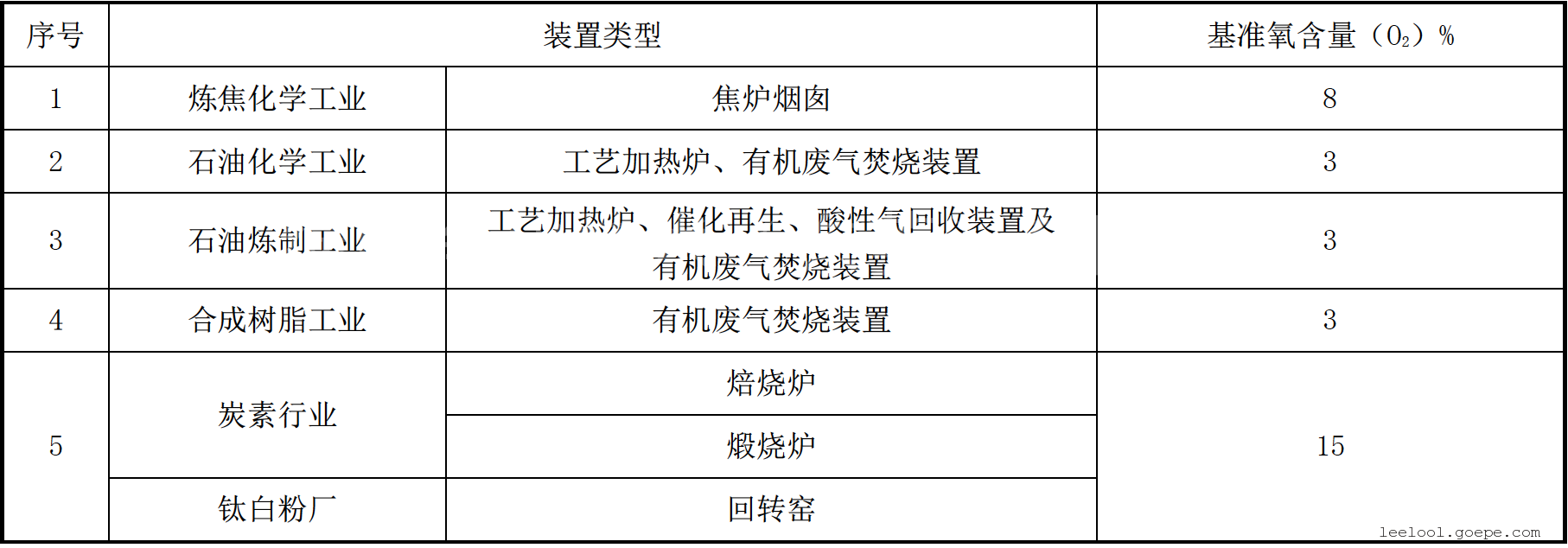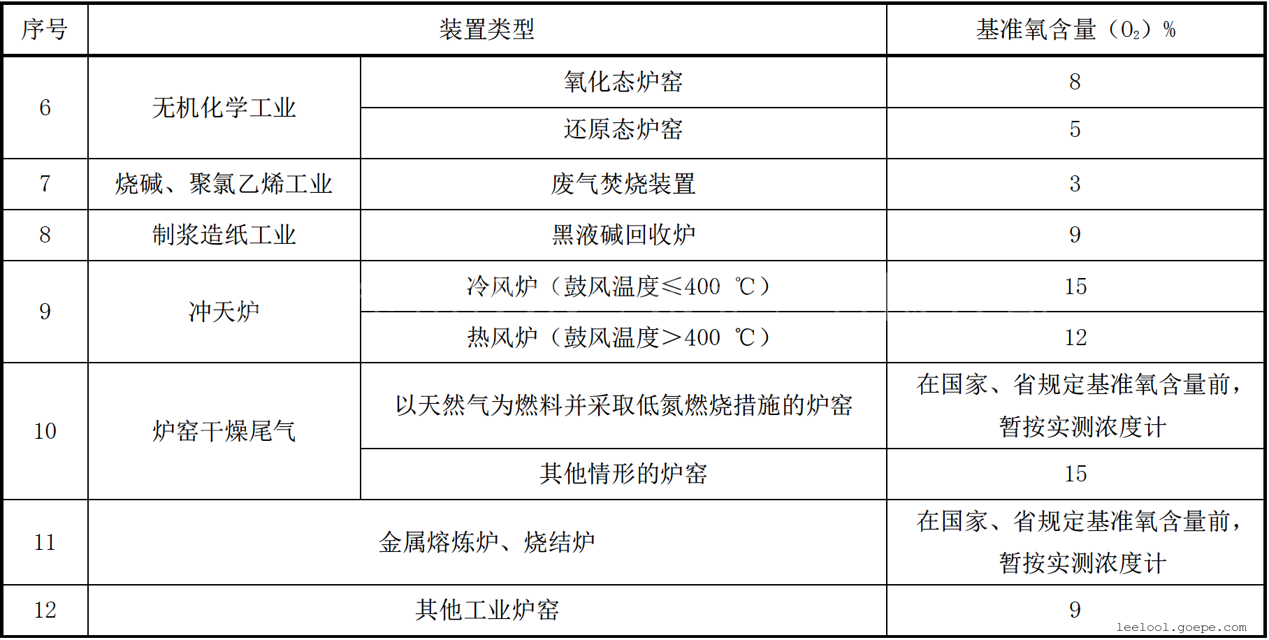 5.2 大气污染物基准氧含量排放浓度折算方法实测的大气污染物排放浓度,应按表4和公式(1)折算为基准氧含量排放浓度。国家、省规定了行业基准排气量的,按基准排气量进行折算。
